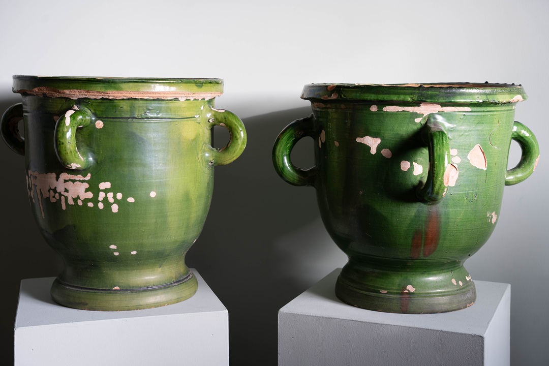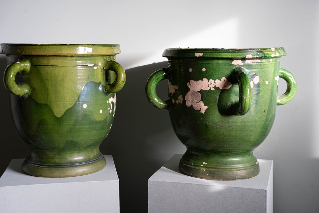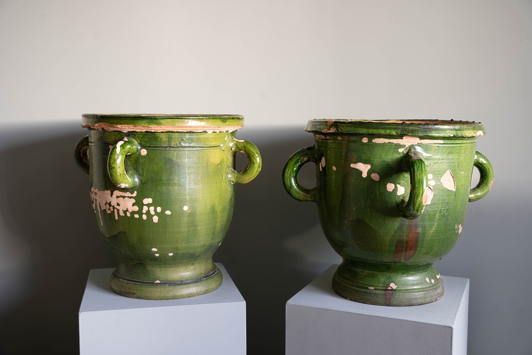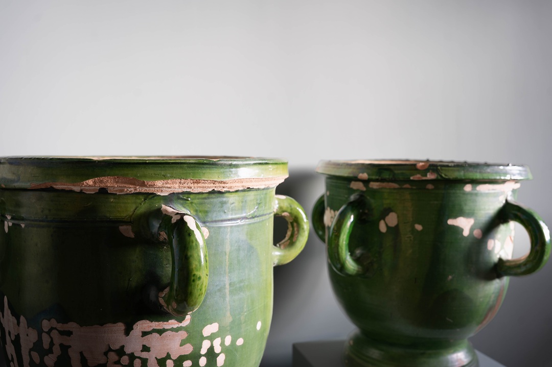 Beautifully aged and full of character, these glazed terracotta Castelnaudary pots originate from the historic Castelnaudary region in the south of France—an area celebrated for its fine pottery as well as its famous cassoulet. Their simple yet striking design has made them enduringly popular and highly sought after.