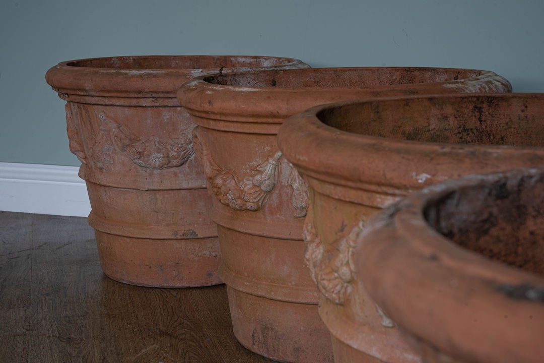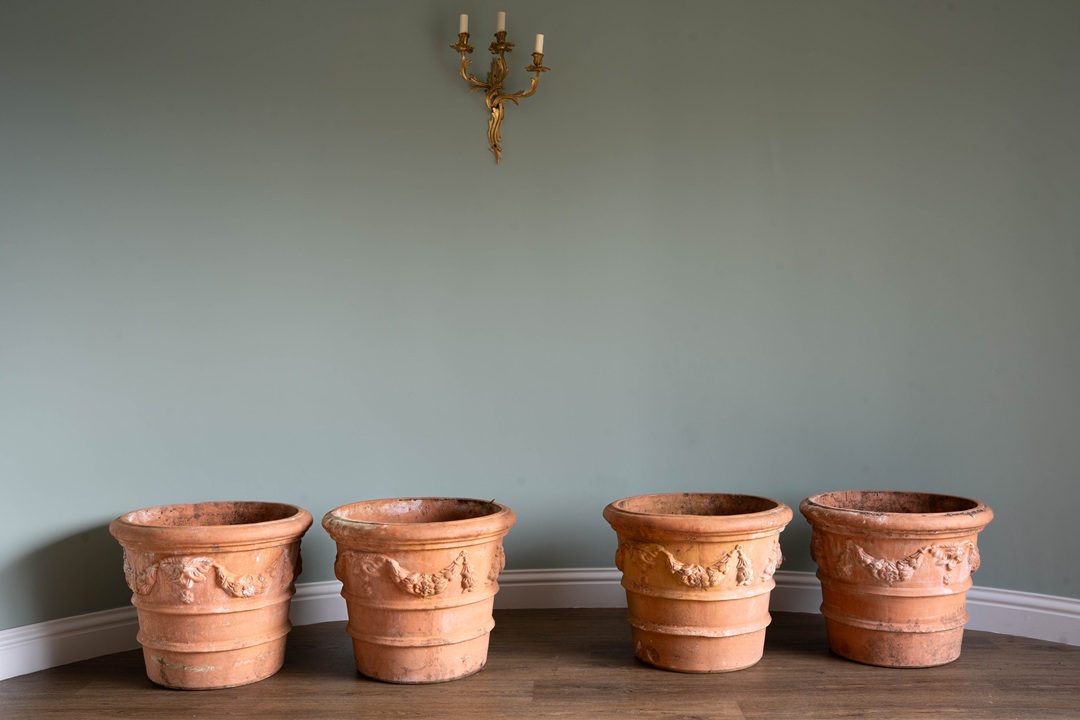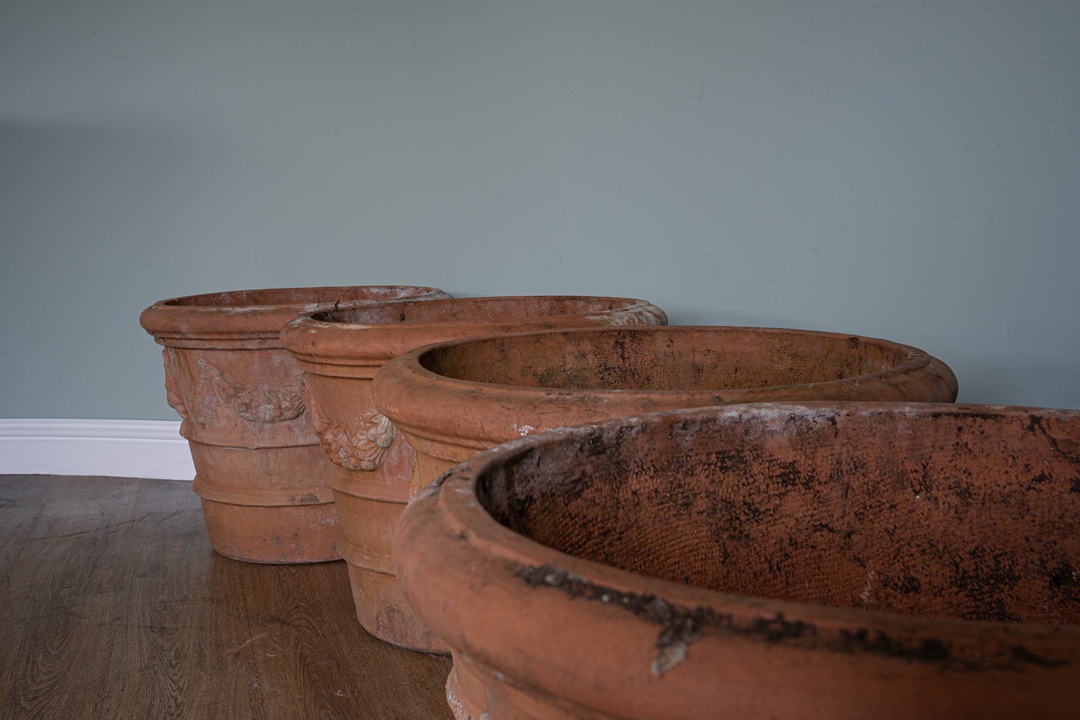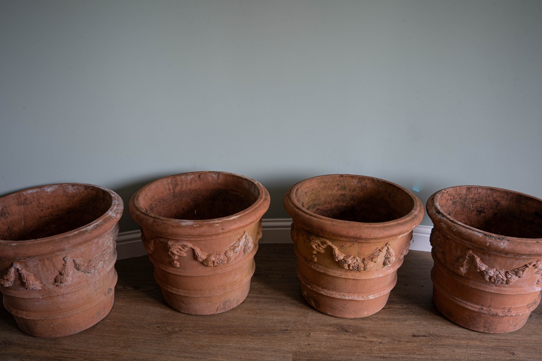 Great for planting trees or large plants, this set of four terracotta pots would sit perfectly indoors or outdoors.
