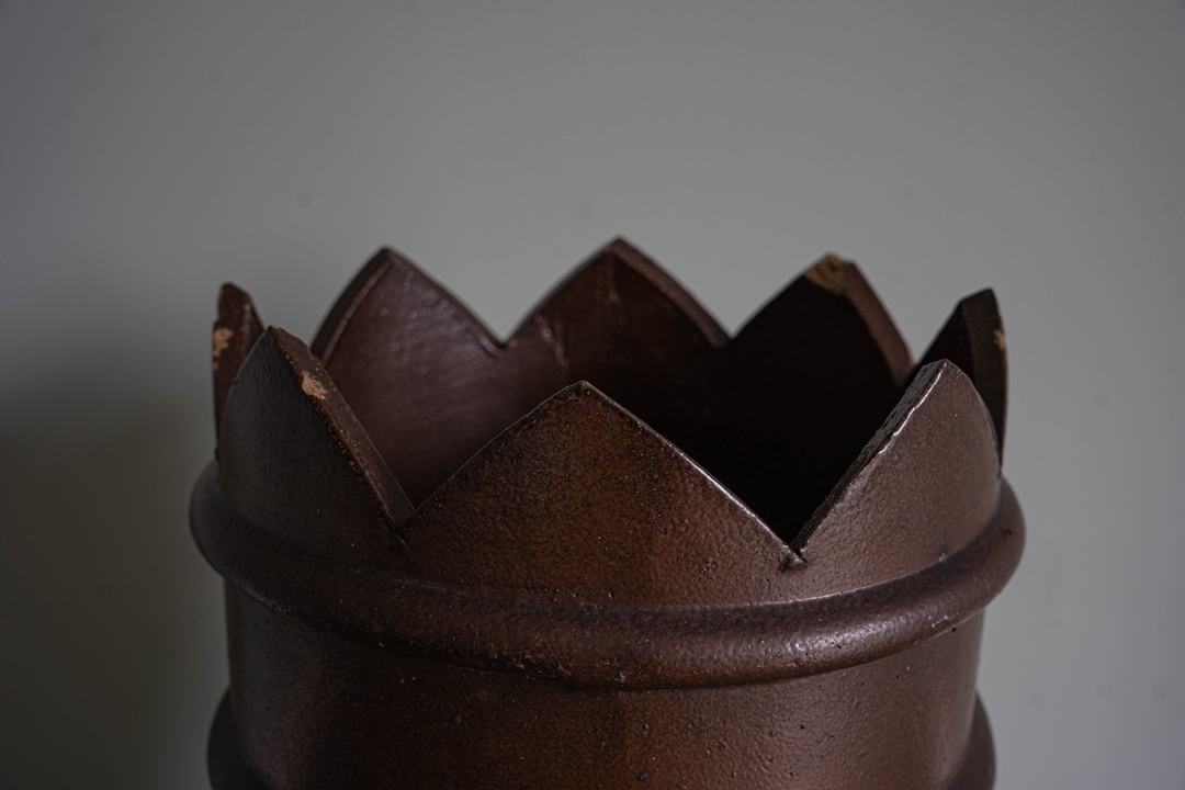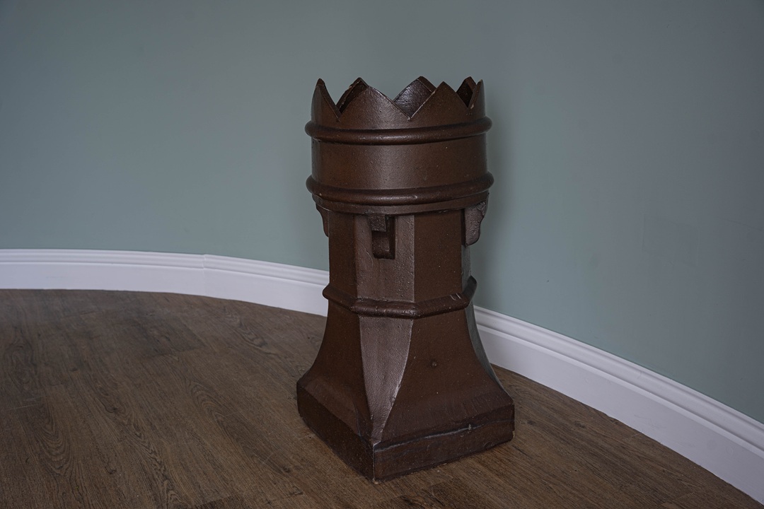 Delightful salt glazed chimney pot with a rich dark brown hue. Perfect sized Victorian rooftop chimney, now perfect to use as a garden planter or decorative feature.