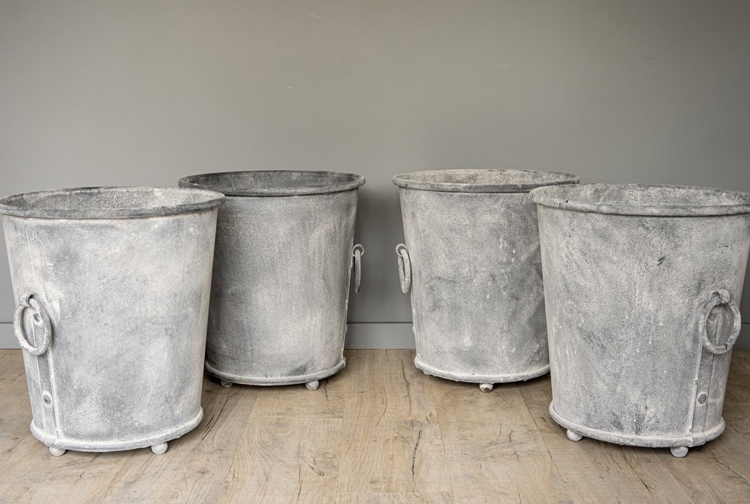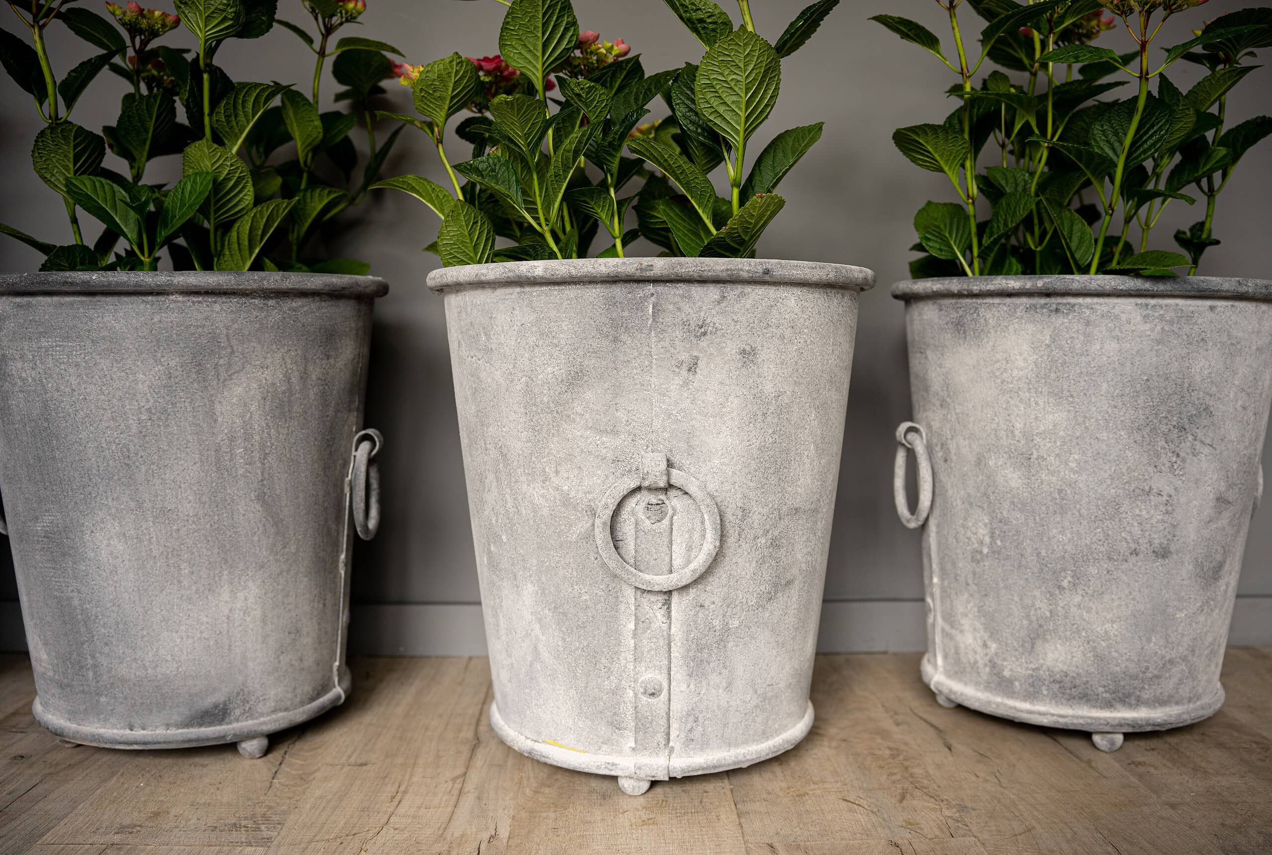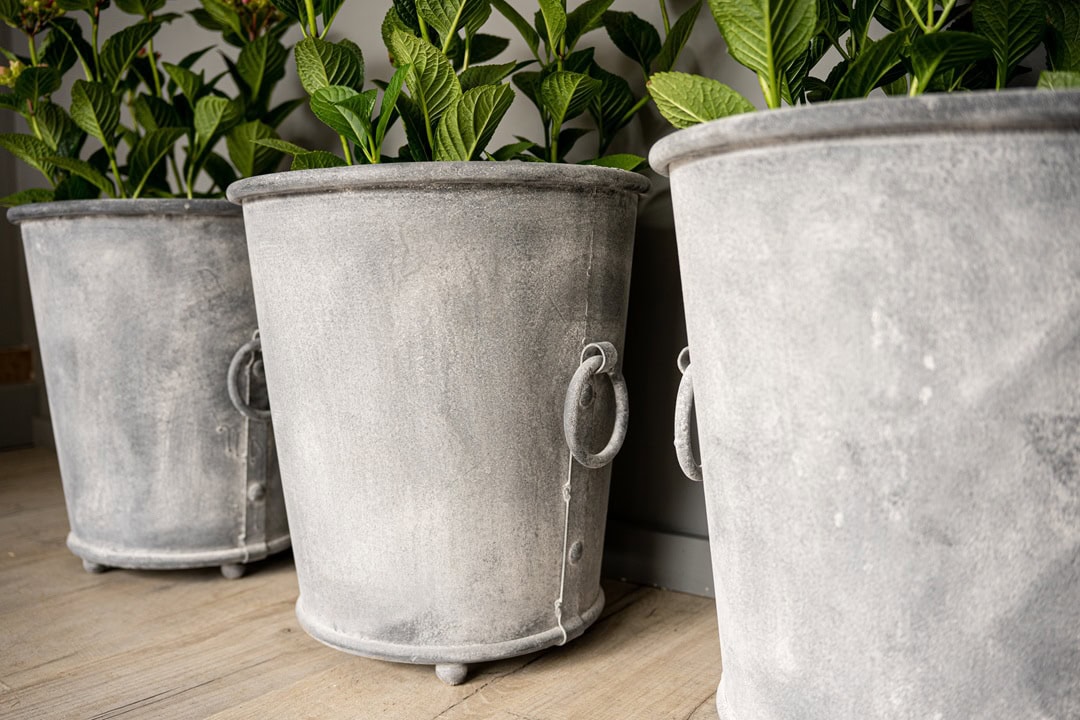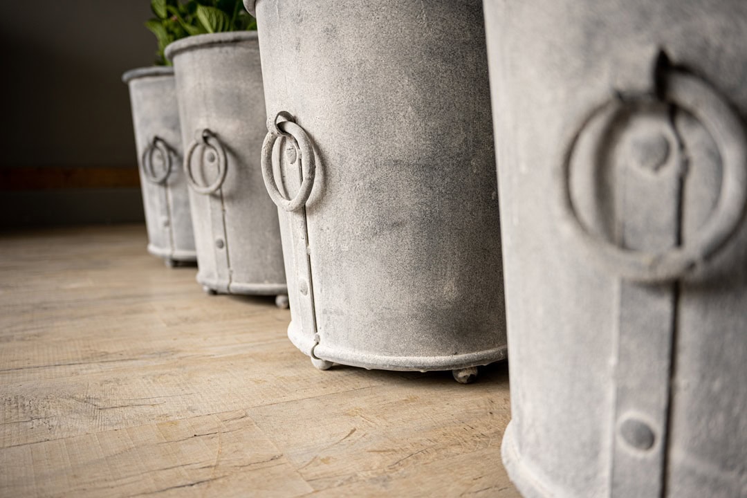 These solid and robust galvanized troughs and planters are a standout addition to our collection. Although we seldom stock new items, we couldn’t resist the appealing design and sturdy build of these riveted planters. Versatile in use, they make excellent decorative garden planters or vegetable pots. Additionally, they can serve as log baskets or be used indoors for decorative displays. Featuring large ring handles and rivets along the body, this charming set of these vintage style planters is perfect for enhancing any garden.