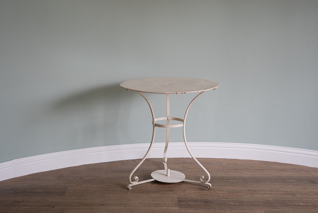 A small vintage garden bistro table from France. This solid iron table would be a perfect for the garden, patio or balcony.